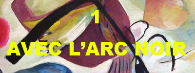 Le commentaire d’une oeuvre est un miroir d’Alice. Mais le poème « Avec l’arc noir » est-il un commentaire du tableau de Kandinsky. Le titre désigne un point d’impact, assurément. Il faut croire que le projet est né d’une faille initiale. Le jour où j’allais à Beaubourg, tremblant sous l’impact de perturbations psychiques, traversant les salles à grandes enjambées pour me planter devant la toile en constant mouvement... où je voyaiss, assez stupidement, se dessiner, au coeur de la matière abstraite de Kandinsky, un joueur de hockey sur glace ! Ridicule, vraiment. Il est donc possible qu’Avec l’arc noir se rapporte plutot à un tremblement psychique qu’à une oeuvre picturale elle-même. Pourtant l’oeuvre est bien là et elle exerce son rôle tutélaire.