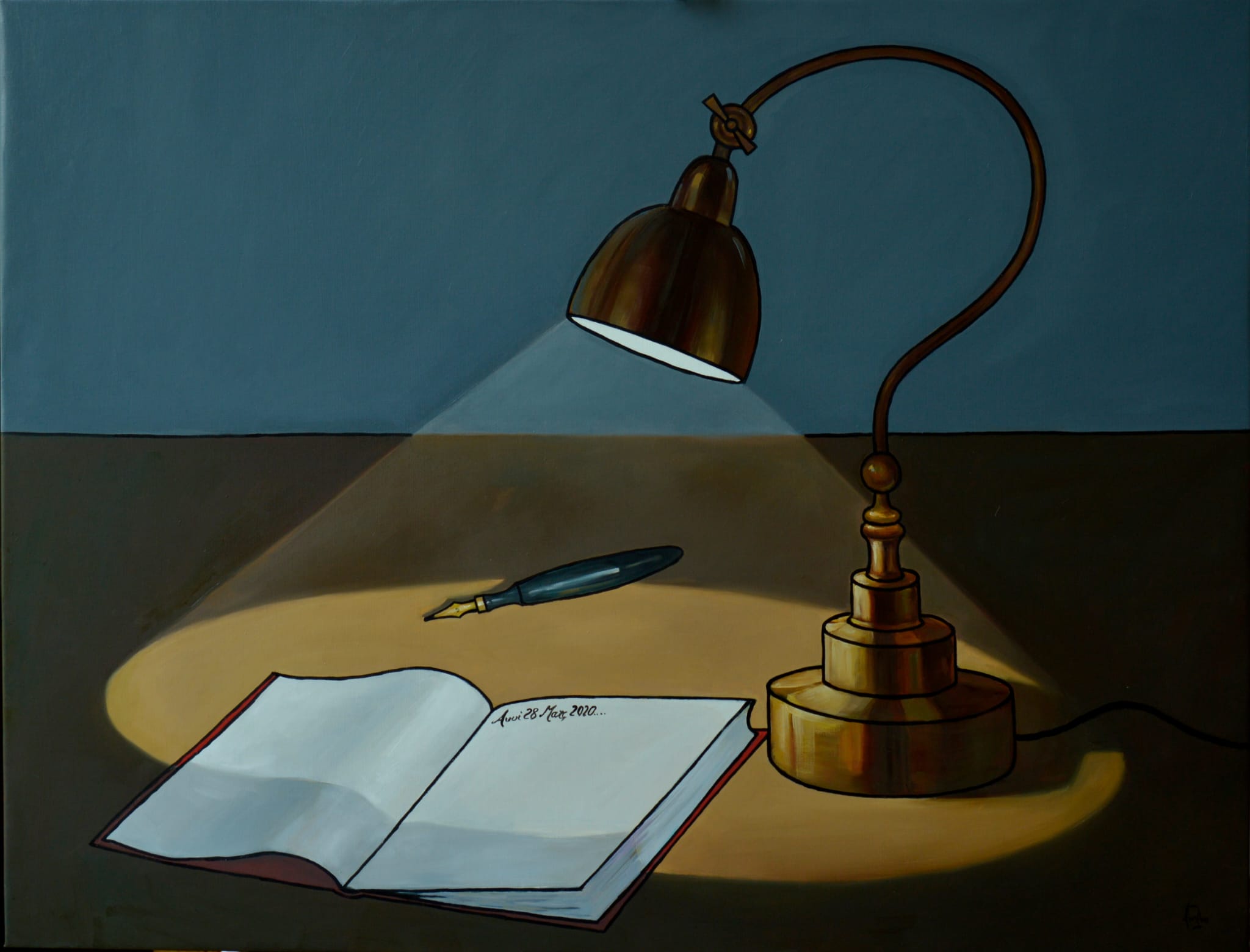 LA LUNA CAMINO DEL TREN DE VUELTA A CASA, la luna sobre San Cugat, los cuadros de Lluís, que me hacen recordar el verso inglés –“El niño es el padre del hombre”-, porque se necesita una vida de arte para llegar a esta simplicidad, esta sobria y como mágica elegancia. La poesía de la pintura en la noche es honda.